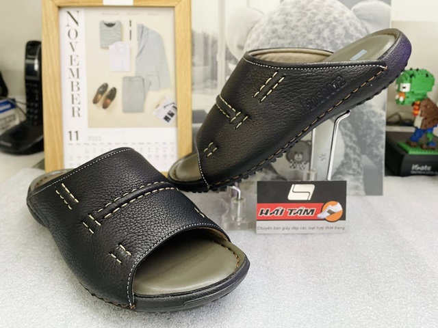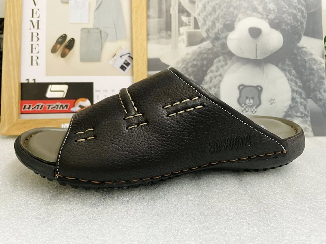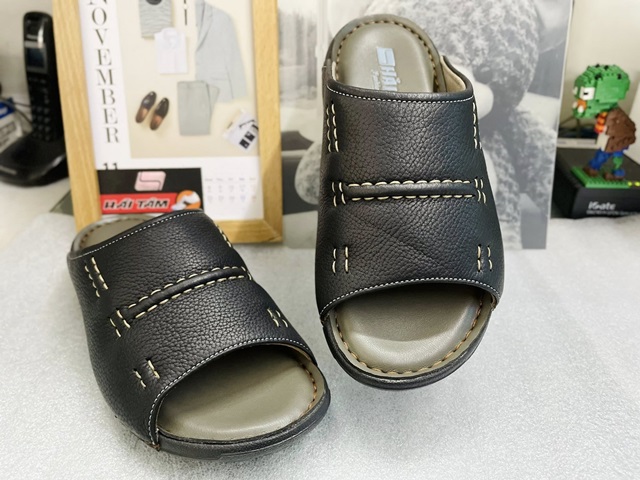 • Kiểu dáng: thiết kế đơn giản nhưng mang lại vẻ đẹp sang trọng, quai ngang to bản mang lại sự khoẻ khoắn, nam tính. Đường chỉ may tỉ mỉ thời trang, đế cao su đàn hồi êm ái, tạo vân sóng chống trơn trượt hoàn hảo, quai may liền đế bền chắc.