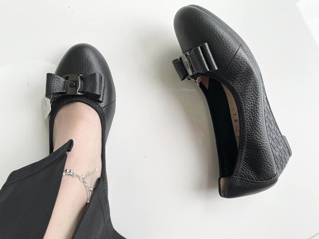 Kiểu dáng mũi tròn xinh xắn kết hợp viền may tạo cảm giác bàn chân thon gọn, cực ôm chân. Giày thiết kế nơ da cùng màu đồng điệu nhẹ nhàng, thanh lịch.