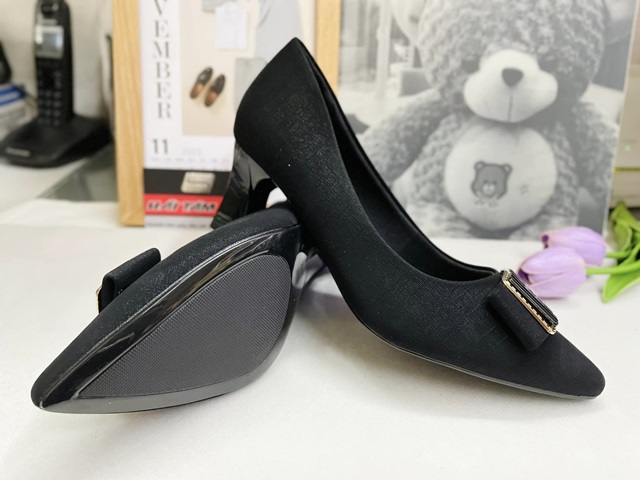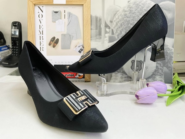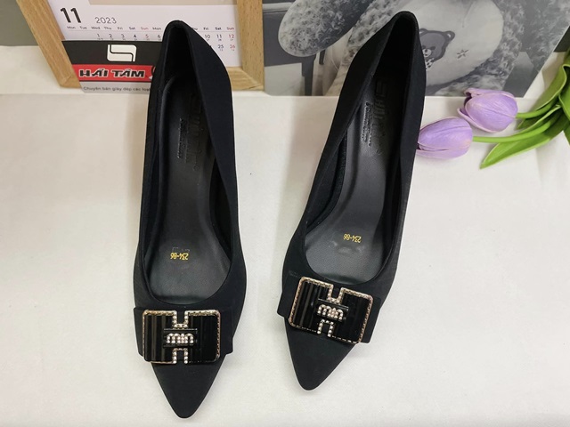 Kiểu dáng: giày cao gót basic luôn là sự lựa chọn an toàn cho phái đẹp. Với phần mũi nhọn cổ điển giúp chân nàng thêm thanh thoát hơn, tạo cảm giác tự tin, sang chảnh khi sải bước. Thiết kế trẻ trung và sang trọng với điểm nhấn khoá đính đá tỉ mỉ, thẩm mỹ.