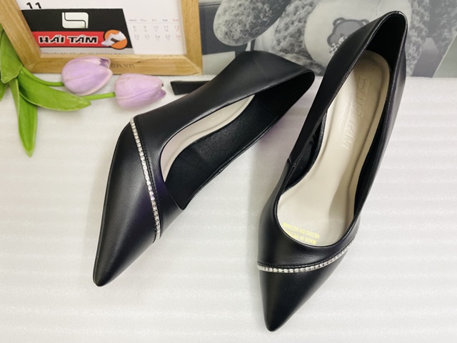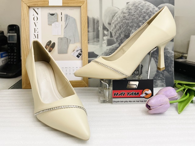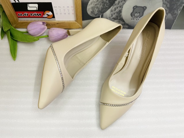Giày cao gót thiết kế đơn giản nhưng không kém phần sang trọng, mũi nhọn basic thời trang, càng làm tăng sự quyến rũ cho đôi chân của bạn.