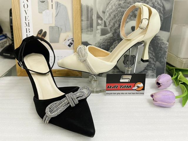 GIÀY CAO GÓT MŨI NHỌN THẮT NƠ XOÀN SANG TRỌNG