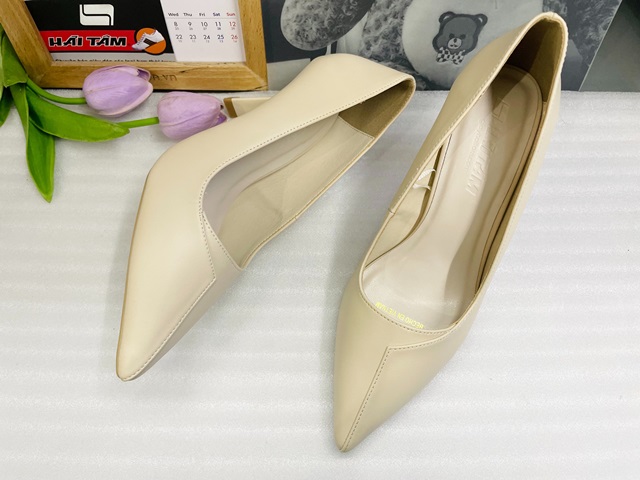 Giày cao gót thiết kế đơn giản nhưng không kém phần sang trọng, mũi nhọn basic thời trang, càng làm tăng sự quyến rũ cho đôi chân của bạn.
