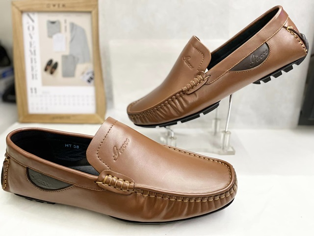 GIÀY MỌI DA NAM TRƠN MÀU BÒ HT58