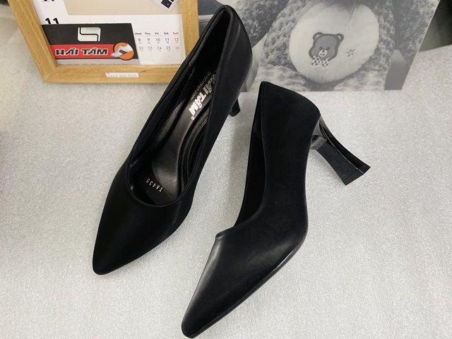 • Kiểu dáng: form giày basic, gót trụ cách điệu sang chảnh, mũi nhọn thanh giúp chân thon gọn, thiết kế trơn đơn giản nhưng tinh tế, form giày đẹp.