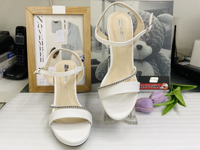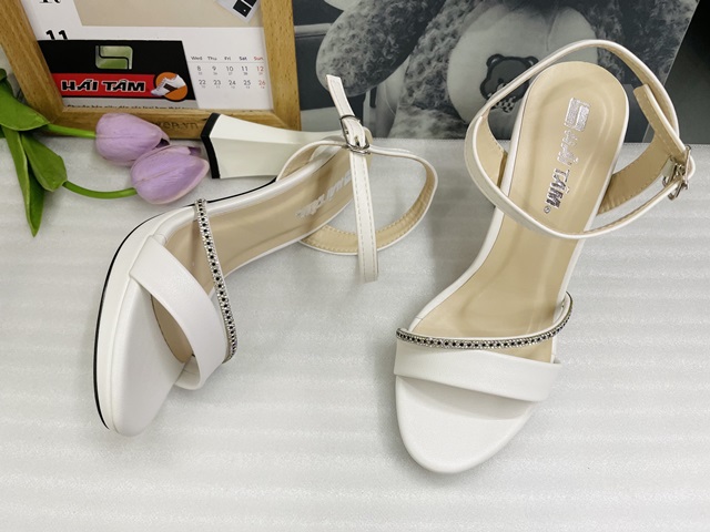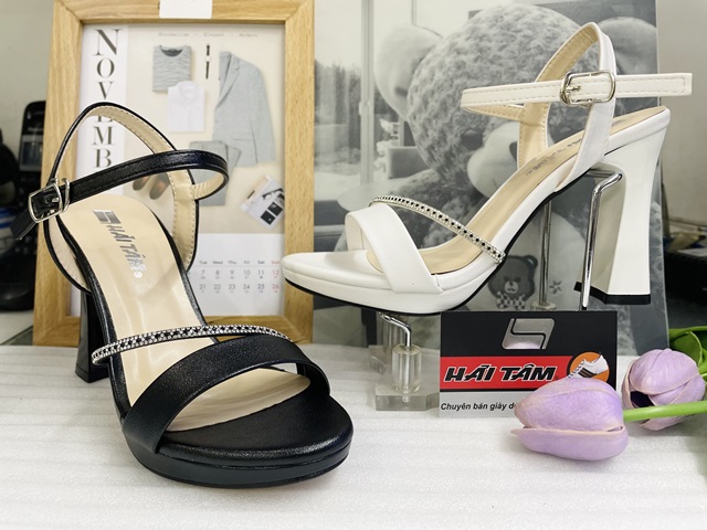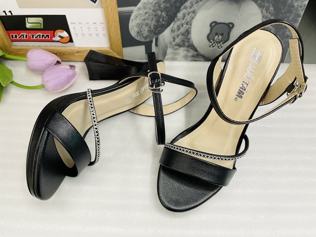 Kiểu dáng: giày sandal nữ có kiểu dáng đẹp hiện đại dễ dàng phối đồ. Quai ngang phối quai xoàn chéo ôm chân, kết hợp kim sa lấp lánh tạo ấn tượng trong mỗi bước chân. Dây quai gài tiện lợi, gót trụ cao 9cm tôn dáng, đế đúp dễ di chuyển mà không lo đau chân.